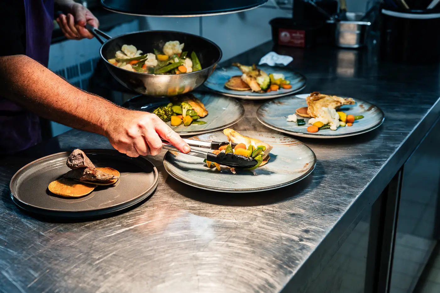 Nous vous proposons une cuisine française contemporaine avec le choix entre trois entrées, trois plats (viande, poisson ou assiette végétarienne) et trois desserts.